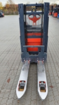 Endkundenbemerkung: Die Angabe der Betriebsstunden kann aufgrund von Zwischenvermietungen vom tatsächlichen Wert abweichen. Aktuelle Betriebsstunden erhalten Sie jederzeit gerne auf Nachfrage. Die Auslieferung des FFZ erfolgt mit gültiger FEM-Prüfung und technischer Durchsicht in unserer Werkstatt., Sonderausstattung: f. Breite ü. Gabelzinken 560mm, Hydraulische Stützrollen, Fahrgeschwindigkeit 10km/h, Schleichfahrtfunktion, Vorbereitung für Nassbatterien, Batt. Kabel m. Anschluß Flex, Durchgreifschutz Drahtgewebe, Bügel für Anbauelemente, Halter Terminal + 24 V Spann., Klemmbrett, Soft Landing des Gabelträgers