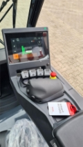 LED Arbeitsscheinwerfer 2 Stück, LED Rückkombileuchte, blaues Warnlicht nach hinten gerichtet, Minihebel mit Fahrtrichtungsumschalter in der Armlehne, automatische Feststellbremse im Display integriert, Notausschalter in der Armlehne integriert, Bremspedal, Sitz Grammer MSG 65 inkl. Sicherheitsgurt-Orange Frontscheibe mit Wischer und Dach Höhe 2235mm, Gummischutz für Antriebseinheit, Spannungswandler DC/DC Output 80W/12V, E-Bar, Hinterer Haltegriff mit Hupe, Smart-Access Aktivierung. CE-Zertifikat, Sonderausstattung: 4 Ventile mit Schlauchführung für 3. + 4. Ventil,
