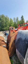 Engine, torque converter, front frame, bucket, boom, gearbox, hydraulic components, electrical system, front and rear axles, brake system need repair. Oil leaks. Gas and brake pedals need replacing. There is no rear camera. Out of order, won't start. Engine replaced in 2023.