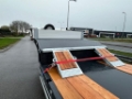 MASSES & DIMENSIONS Gross Vehicle Weight (kg) : 58.000 Loading Platform Length (mm) : 9.000 Weight of Axle Group (kg) : 36.000 Total Lenght (mm) : 13.550 Kingpin Capacity (kg) : 22.000 Total Width (mm) : 2.550 Curb Weight (kg) : 12.300 Loading Platform Height (mm) : 920 Pay Load (kg) : 45.700 Height of 5.th Wheel (mm) : 1.310 CONSTRUCTIONS Base Chassis Heavy duty and extra durability designed BOX type chassis All welded S355 steel chassis. Outer frame is UPE 240 profile. Welding (Chassis) : Automatic ARC submerged. Welding (Superstructure) : Automatic robot welding. Axle (Type) : Özkoç Trax or Osman Koç Turkish Brand Drum brakes 3 x 12 Ton axles Axle Lifting : 1st axle automatic Suspension (Type) : Air Suspension. Steering Axles : - King pin (Type) : 1 position with 1x coupling-pen 2” (EU approved) Çayırova Brand. Tires : 12+1 Units, 245 / 70 R 17.5 Fulda or Pirelli or Goodyear Brand. Rims : 12+1 Units, 6.75 x 17.5 steel rims. Jantas or Ako Brand. Landing Gear : Mechanical operated by one side, two speed. Gos Brand. Brake System : Wabco EBS (4S/3M) with RSS according to EC Directive with ADR Adaptation. Brake Chamber 1 axles with 2 units emergency brake chambers. 2 axle with 4 unit service brake chambers. Electric System 24V, 2x7 + 1x15 pin sockets, according to SAE standard with ADR Adaptation SABA Brand. • 2 x Rear Stop Lights. - 4 x Side LED Lights. • 2 x White LED Lights - 2 x Front LED Lights • 2 x Registration Plate Lights - 2 x rotating Lights Floor Above tyres and edges of platform are covered chequered sheet and hard wood,the middle surface is covered by flat sheet steel. Rear Loading Ramps Hydraulic operated rear ramps with Electro pump for rear ramps hydraulic function with cable push – button for remote control.Folding type rear ramps length 2500 mm +1500 mm width 900 mm,covered all steel.Rear ramps are sliding internal and external hydraulic. Short steel ramps behind of neck. Color : Upon Request Paint Application Sand Blasting, Chemical cleaning, HYZINC covering, Epoxy covering and 2 coats of acrylic paint. TECHNICAL SPECIFICATIONS Accessories • 2 x 7 pcs of heavy duty lashing rings mounted on the outer frame mushroom type • 4 x Certificated Expray mud flaps. • 1 x Plastic water tank • 2 x Wheel chocks and holders • 2 x 7 Galvanized sides extensions brackets 250 mm + 250 mm • 2 x Side Protections, Aluminium • 1 x Tool box. • 1 x spare Wheel carrier with 1 tire(on the gooseneck) • 2 x Manual support Legs at the rear. • 2 x Reflective tape and reflector sign at the rear and sides. • 2 x Side extensions reflector • Steel front panel(height:400mm) • Aluminum side panels on gooseneck section(height:400mm) • 1 plaque places on rear ramps or bumper = More information = Empty weight: 12.300 kg CE mark: yes COC available: Yes