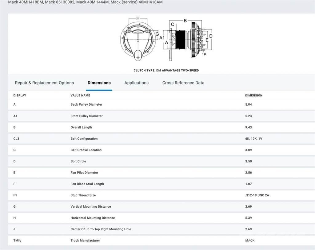 (GOOD USED/TESTED) Horton Mack AMI 79A94982 Fan Clutch For Sale, Pulled off Mack AMI Diesel Engine, Viscous, 601741, WFI, 5620, OEM Old service # 999357, 999477, 999498, P/N 79A9498-2, 799498, replaces 999498, 999427, 999357, Other P/N 989498, 989357, Fits 2002-2007, Serial # 6816359, Stock # 4679