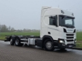 Number of axles: 3, Configuration: 6x2, Total fuel capacity: 1100 litre, 2nd fueltank, Trailer coupling, Kingpin size: 40 DIN, fifth-wheel: Fixed, Diff. locks: 1, Suspension type: air suspension, Cabin type: Highline, Cruise control, Tacho, Digital tachograph, Airconditioning, Parking Airco, Parking heater, Electric windows, Electric mirrors, Radio/cassette, Color: white, Heated mirrors, Lighting type: Led lamps, Laneassist, Climatecontrol, Seat heating, Bluetooth, Engine capacity: 331 Kw (444 Hp), Fuel type: diesel, Euro: 6, Gearbox kind: Opti-cruise, Gearbox make: Scania, Number of Gears: 12, Add. break system, Retarder make: Scania, Power steering, ABS, ASR, Starter battery, Twistlocks: 1x20, Systemlength: 80 cm, Central locking, Seats configuration: 1+1, Seat cover: cloth, Chair adjustment: Manually = More information = Axle configuration Tyre size: 315/80R22,5 Axle 1: Steering; Tyre profile left: 10 mm; Tyre profile right: 8 mm Axle 2: Double wheels; Tyre profile left inner: 7 mm; Tyre profile left outer: 6 mm; Tyre profile right outer: 6 mm; Tyre profile right outer: 6 mm Axle 3: Steering; Tyre profile left: 6 mm; Tyre profile right: 4 mm Functional Height of cargo floor: 122 cm Condition Technical condition: good Visual appearance: good Damages: none Number of keys: 4 Financial information Lease price: €880 p/m (default, 60 months); ask for more information and conditions = Dealer information = https://www.kleyntrucks.com Why buy at Kleyn Trucks? The choice is easy: 1,200 used trucks, tractor units, semi-trailers, trailers and more. All in one location, with a choice from all brands. You can get a one year warranty package for all our trucks with a mileage up until 700.000 kilometers and 7 year age, including service maintenance. In our free consultation, we look with you for the financing deal which suits your needs best. • Sharp prices • Good service • Fast changing, big stock! • Always sure about the quality! • 100+ years of Trading expertise you can trust! • Professional technical service • Delivery to your doorstep possible • Professional technical service Visit our website at: www.kleyntrucks.com and check out our complete stock. Leasing possible